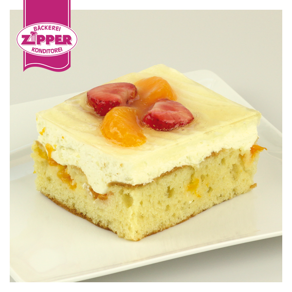 Weizenmehl*, Eier*, Rapsöl, Zucker, Weizenstärke*, Milchpulver*, Backpulver, Salz, Vanille, Füllung: Zucker, mod. Stärke, pflanzliches Fett, Salz, Vanille, Dekor: Tortenguss (Wasser, Zucker, Pektine, Fruchtextrakt), Mandarinen, Erdbeeren